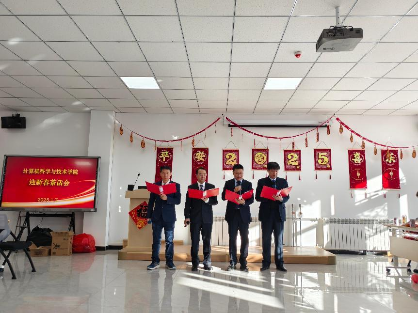 祥龙摆尾辞旧岁,金蛇纳福迎春来!2025年1月7日,计算机科学与技术学院在软件大楼527举办了“智汇新春,码绘锦程”2025年迎新春教职工茶话会。茶话会邀请了校党委常委、副校长刘俊以及学院毕业的职能部门老师、学院全体教职工共80余人参加。