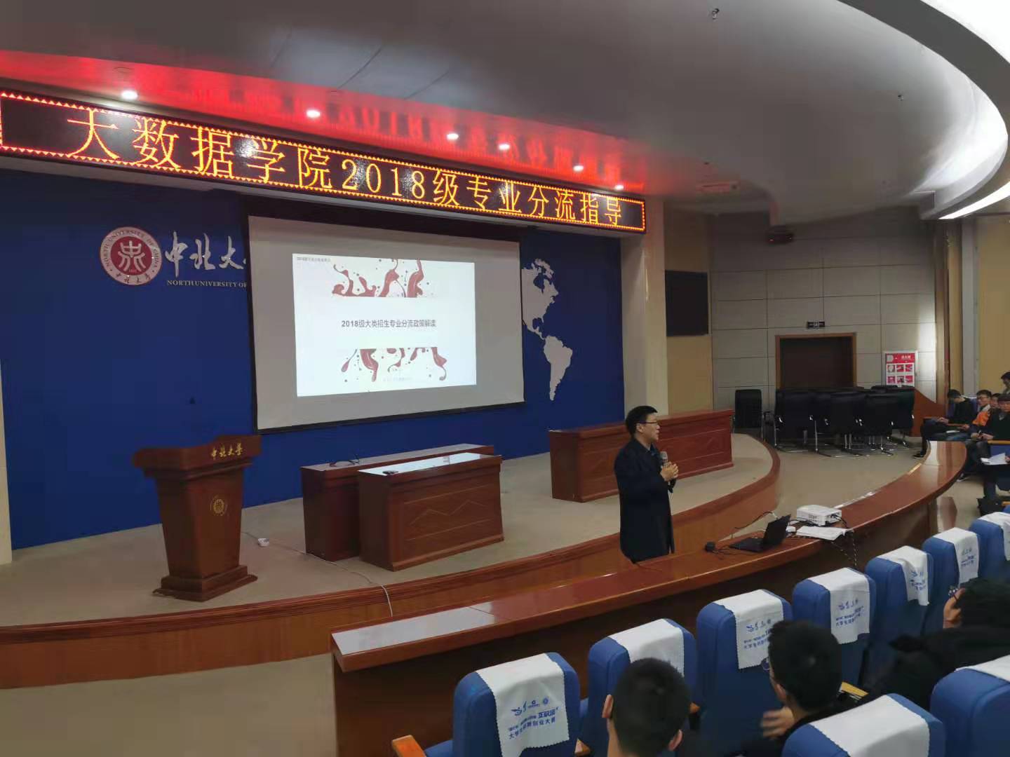 在瑾瑜国际会议中心召开2018级计算机类专业分流的动员大会。学院领导、专业负责人和骨干教师、班级辅导员及2018级全体学生出席本次会议。会议由教学副院长秦品乐主持。会上,副院长秦品乐教授首先做了动员讲话,他强调,分流的专业(方向)各有所长、各有特色,学生在选择分流专业的时候要对自己的职业发展有合理定位,根据自己的专业兴趣,立足发挥自身的长处,努力培养良好的综合素质和各项基本能力,为未来职业发展打好基础。他鼓励学生在这次专业分流后应不忘初心,再起步、再拼搏,将接下来的两年大学时光过得更加精彩。