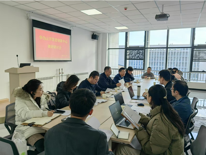 与华为技术有限公司的前期合作情况,并对学院本科人才培养模式改革、专业课程共建需求、师资联合培养等方面阐明了合作建议。学院副书记杨晓东介绍了学院在“做中学”、学生创新创业实践、产教研学赛融合等实践教学取得的成绩。教务部副部长王海宾从学校层面介绍了课程替代、培养方案融入、做中学案例实施的具体途径,为本次调研交流指明了合作方向。随后,各专业针对本专业培养特色及合作意向做出了具体咨询。