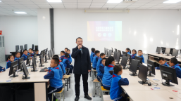 附属学校二年级全体师生共80余人走进计算机科学与技术学院、机器视觉与虚拟现实山西省重点实验室,开启了一场沉浸式科技研学之旅。学院党委书记喻华兵、副院长梁志剑出席活动,喻书记现场寄语:“青少年是科技创新的未来力量,希望以实验室开放为契机,为孩子们心中播撒科学探索的种子。”附校带队老师补充道,此次研学是学校“探秘AI,智启未来”系列活动的首站,未来将持续深化校际合作,搭建更多实践成长平台。活动现场,李潞洋老师与张鑫博士还与学生们分享了人工智能领域的前沿应用案例。