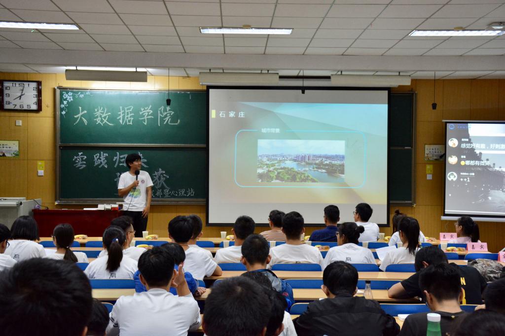 活动在文艺部同学的歌曲《牵丝戏》中拉开序幕,全场人员随着动听的歌声慢慢全身心投入活动中。第一个上场的是实践队队长张恩友,他简单介绍了所带领的团队关注的共享单车问题的大背景,然后邀请他的队员上台详细讲述了在石家庄和太原走访政府、企业、人民群众时的故事,将两个城市共享单车的发展进行对比,并就实践中与政府部门接触、问卷调查和回收小黄车等做了详细介绍,穿插着在实践过程中衣食住行方面的有趣故事。队员幽默风趣的讲解和时不时与观众的互动将现场气氛推向高潮。最后,队长王艺对此次实践活动进行详细介绍并做出问题总结。