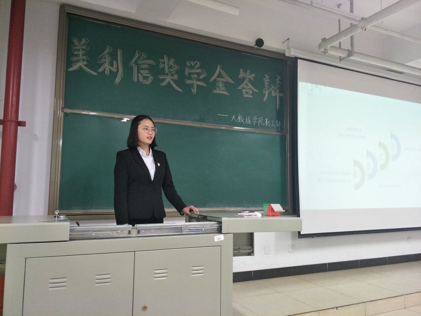 美利信奖学金作为社会捐资旨在肯定同学们往日的努力和激励同学们学习新知识。此次共有11人参与答辩。这些同学用他们自制的ppt向我们展示了他们入学以来的成就与收获,向我们展示了他们丰富而有意义的大学生活。同时他们也讲了他们的心得:进入大学也许有的人会迷茫,也许有的人认为大学就应该像电视剧上一样,也许有人认为大学只有随心所欲才不枉青春,但是这十一位同学用他们的经历告诉我们大学最重要的还是学习,但是又不能只学习,大学本身是个小社会,我们应在不忘学习的同时积极参与活动锻炼自己。