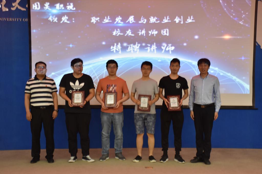 接下来,李俊华书记和杨晓东书记为四位学长颁发职业发展与就业规划校友讲师团特聘讲师聘书。