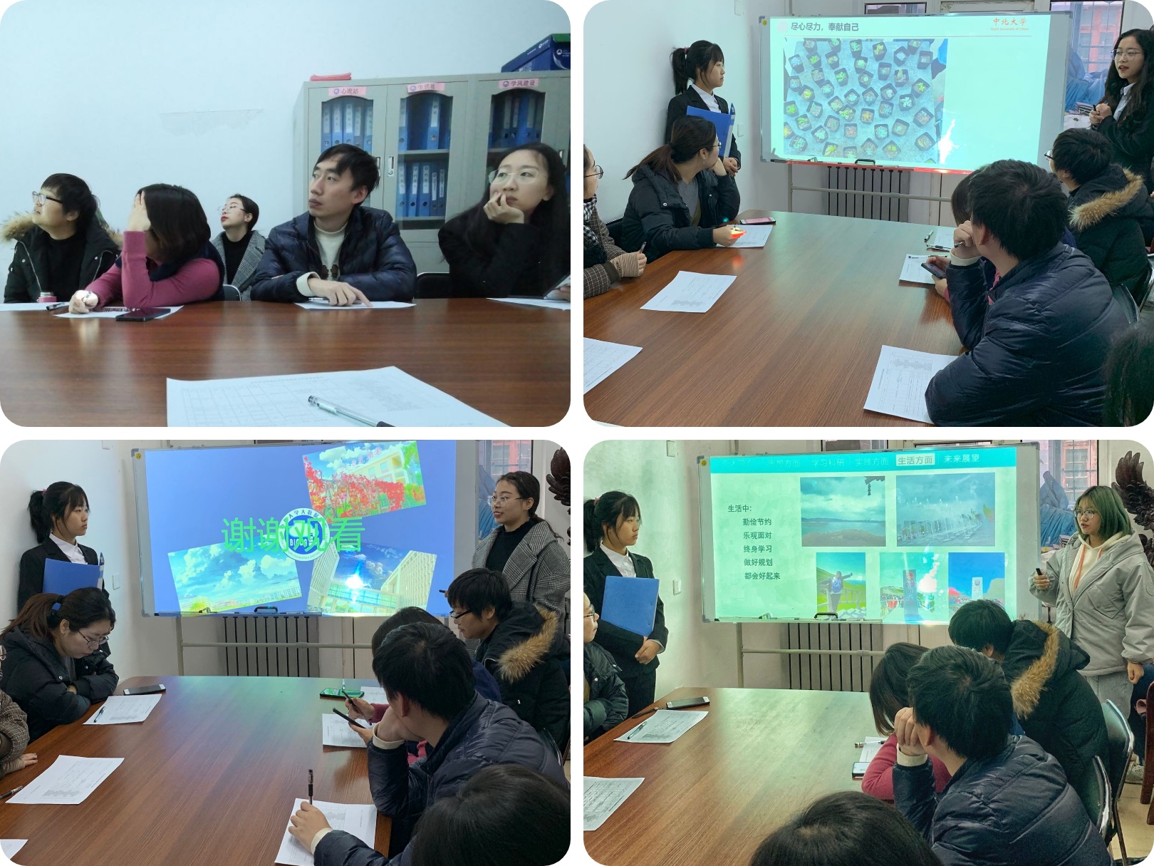 魏春燕,周宇宏,孟姣,卫星,王思豪老师和三位学生评委,本次共四位同学参与评选。