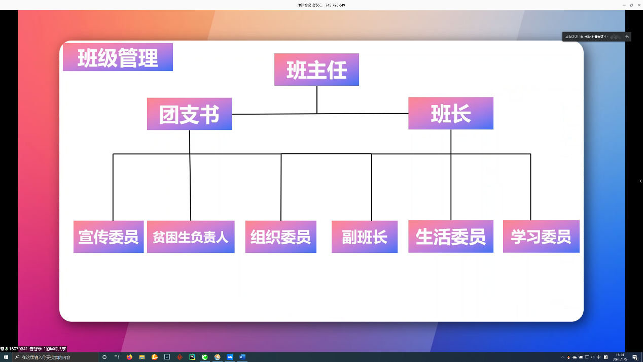 学生科、团委老师以及部分学生评委组成。此次答辩利用腾讯会议远程视频技术平台进行,秉持公平、公开、公正的原则,全程录屏,并保留了答辩相关资料。
