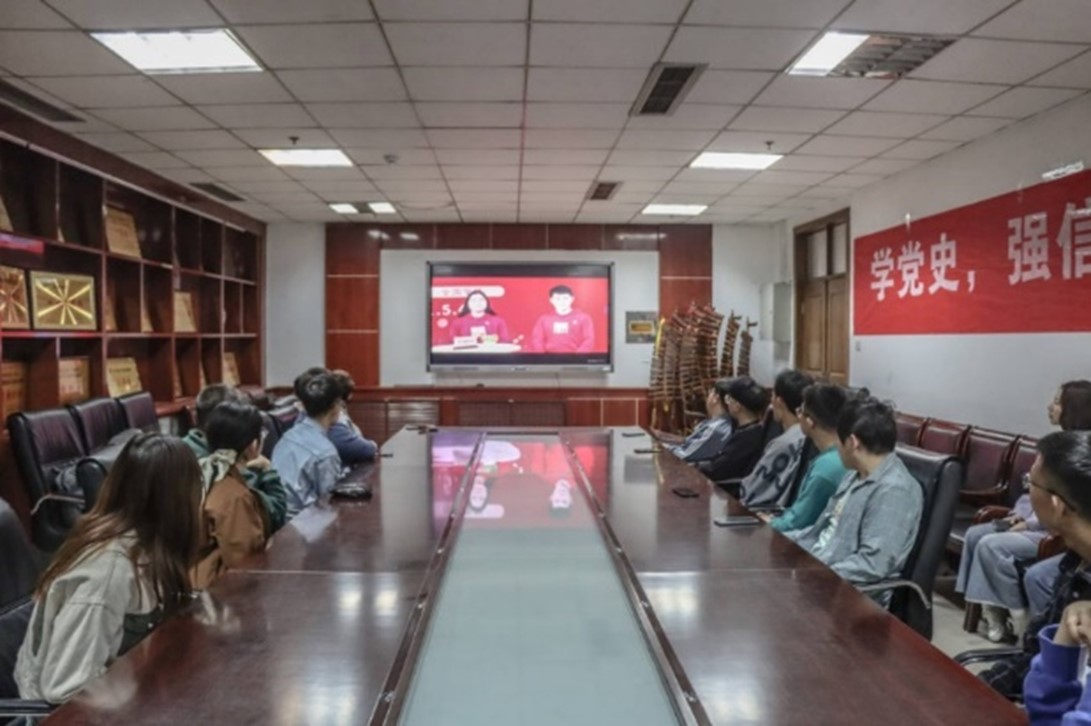 各团支部代表共计三十多名同学共同学习。其余学生以线上观看的方式进行学习。