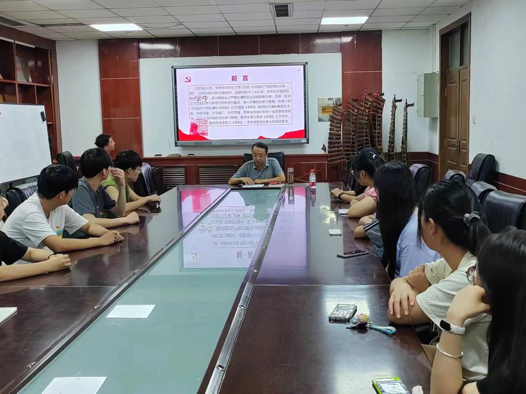 6月30日上午,计算机科学与技术学院党委书记喻华兵为新发展党员讲述主题为“学纪、知纪、明纪,守纪,学生党员要扣好‘第一粒扣子’”党纪学习教育专题党课。