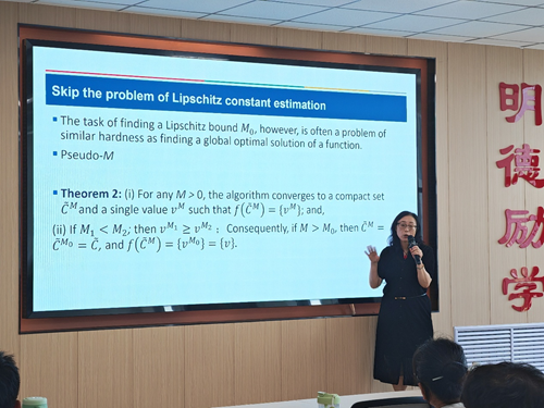 随后,张教授介绍一种用于一般全局优化的实用高效确定性方法——基于粒筛选的多模态全局优化方法。讲解该方法的主要技术特点:能够快速自适应估计目标函数变化率上界以加速穷举搜索,具有多维度普适性且可保证理论全局最优解及完整最优解集合。最后,张教授分享了该方法在天然气输气压缩机设计优化中的成功应用案例。