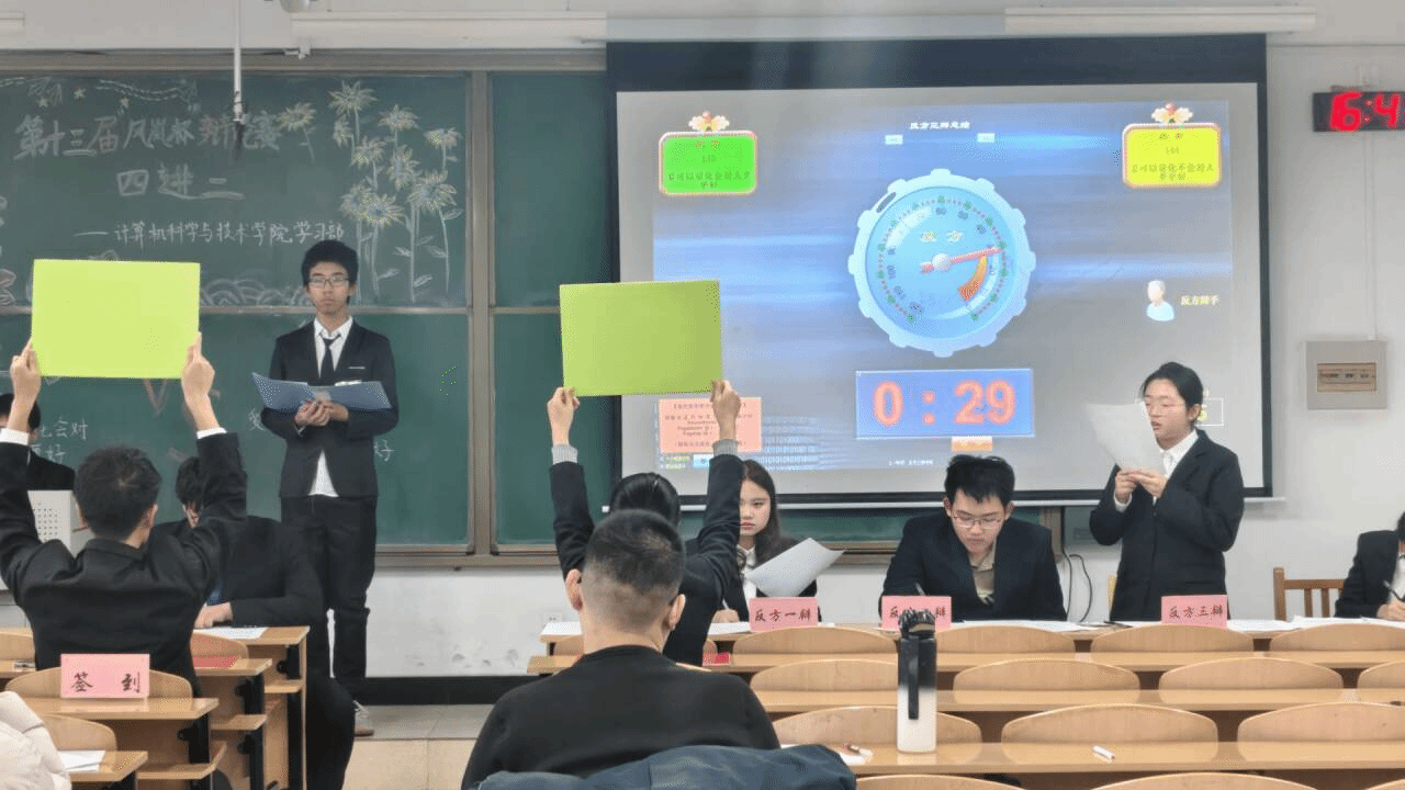 第十三届“风岚杯”辩论赛四进二顺利举行。2025年12月6日下午3:00,计算机科学与技术学院学生会学习部15204T举办了第十二届“风岚杯”辩论赛四进二。