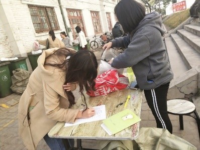 青志部在文瀛五,文瀛十,文瀛十三楼下设置了衣物回收点,并安排了志愿者进行登记整理。在活动期间时常有热心的同学前来询问详情,了解情况后,他们便积极地将洗净的叠放整齐的衣物亲自送到了捐衣点。让我们看到了同学乐于助人,勇于奉献的热情和爱心。