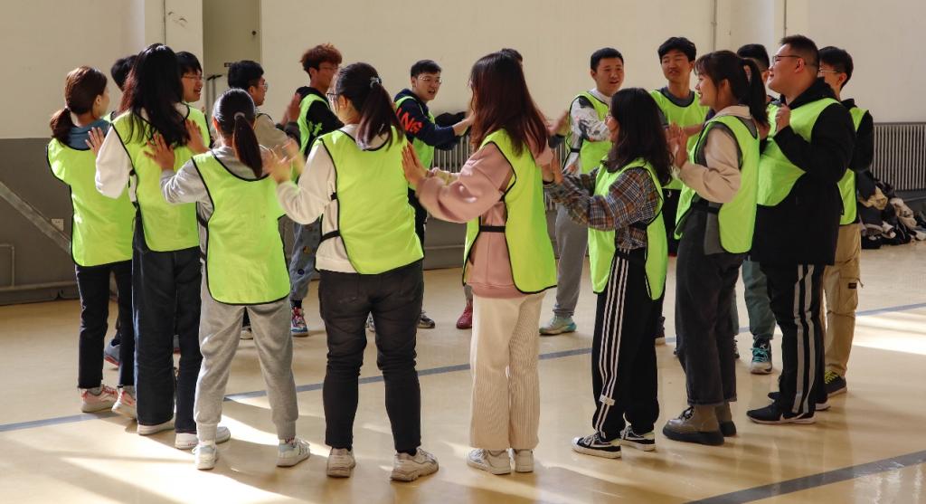 全体学生干部在杨晓东书记和周宇宏老师的带领下,于早上八点在训练馆里开展了本学年的素质拓展活动。