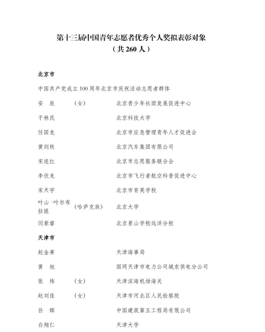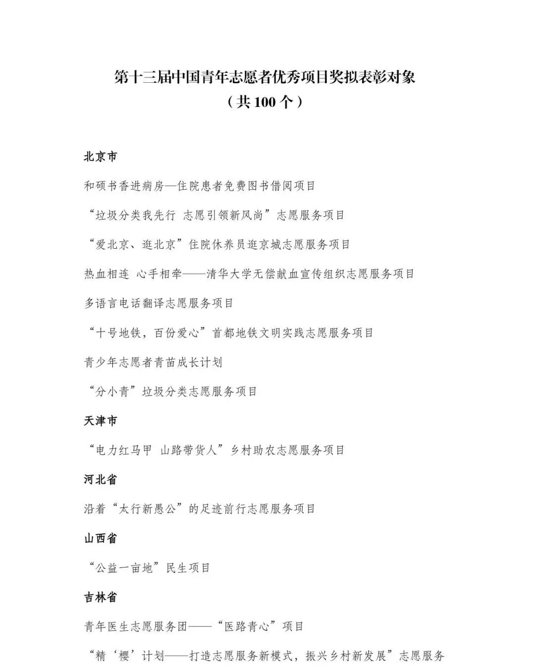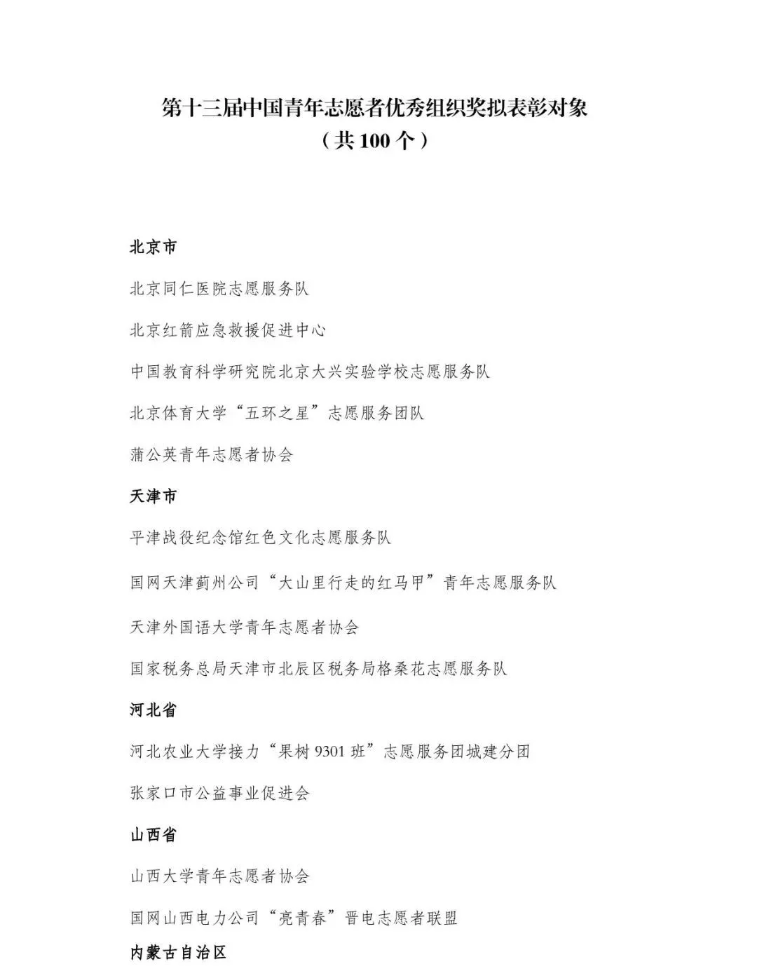 关于第十三届中国青年志愿者优秀个人奖、组织奖、项目奖拟表彰对象的公示