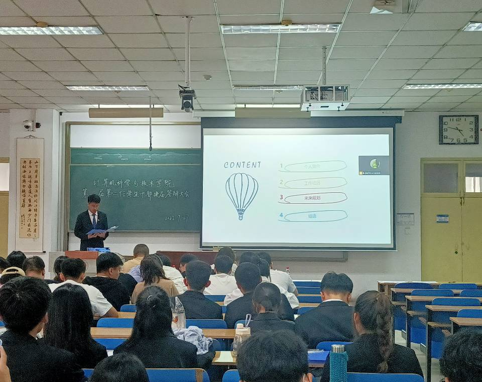 2022年9月27日下午四点半,计算机科学与技术学院第三届学生干部换届答辩于11305H会议室召开,出席此次活动的嘉宾有周宇宏老师、王盼老师、孟姣老师、卫星老师、上届学生会骨干以及本届学生会候选人。