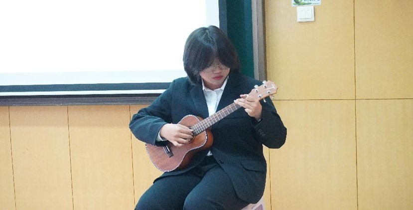 分享过程中,本部门的成员还为嘉宾们表演了尤克里里弹唱,当尤克里里的音符跳跃而出,伴随着那充满情感的弹唱,仿佛打开了一扇通往梦幻世界的大门。每一个旋律都诉说着故事,每一个音符都触动着心弦。