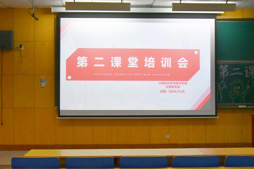 为帮助24级新生全面了解第二课堂并顺利通过该课程,计算机科学与技术学院社团联合会于2024年11月23日下午3:00,在11号楼11509H教室成功举办了第二课堂培训大会。