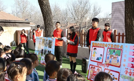 参与这次志愿者活动的志愿者们来自各个年级和不同专业,在此次活动中,志愿者们一起身着红色马甲为小朋友们讲述着发生在雷锋身上的故事。