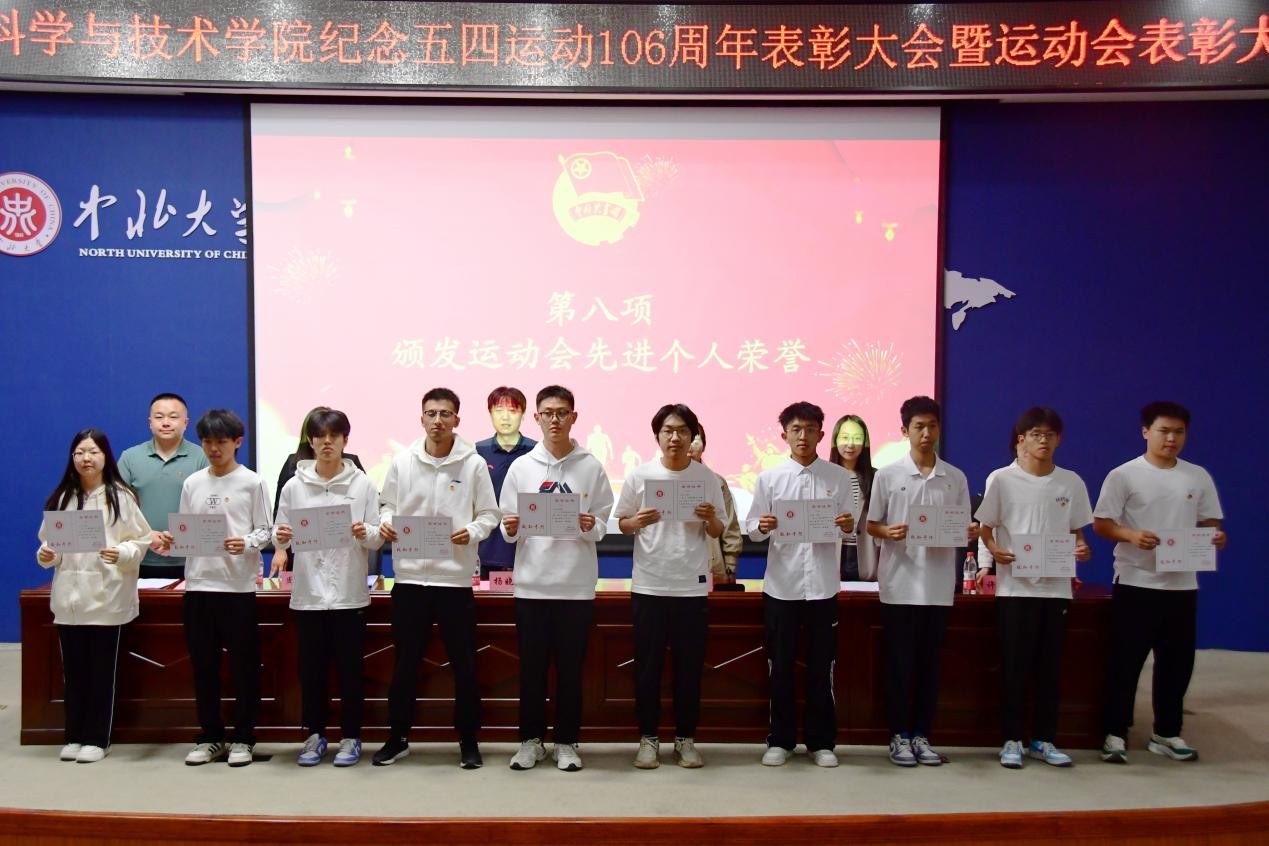 在瑾瑜国际会议中心隆重召开纪念五四运动106周年表彰大会。学院党委副书记杨晓东,院团委副书记周宇宏老师,院团委副书记孟姣老师、党委组织员许颜杰老师、学生科卫星老师、学生科王盼老师及各团支部获奖代表、个人荣誉获奖代表、运动会获奖代表和23、24级全体同学参加本次活动。